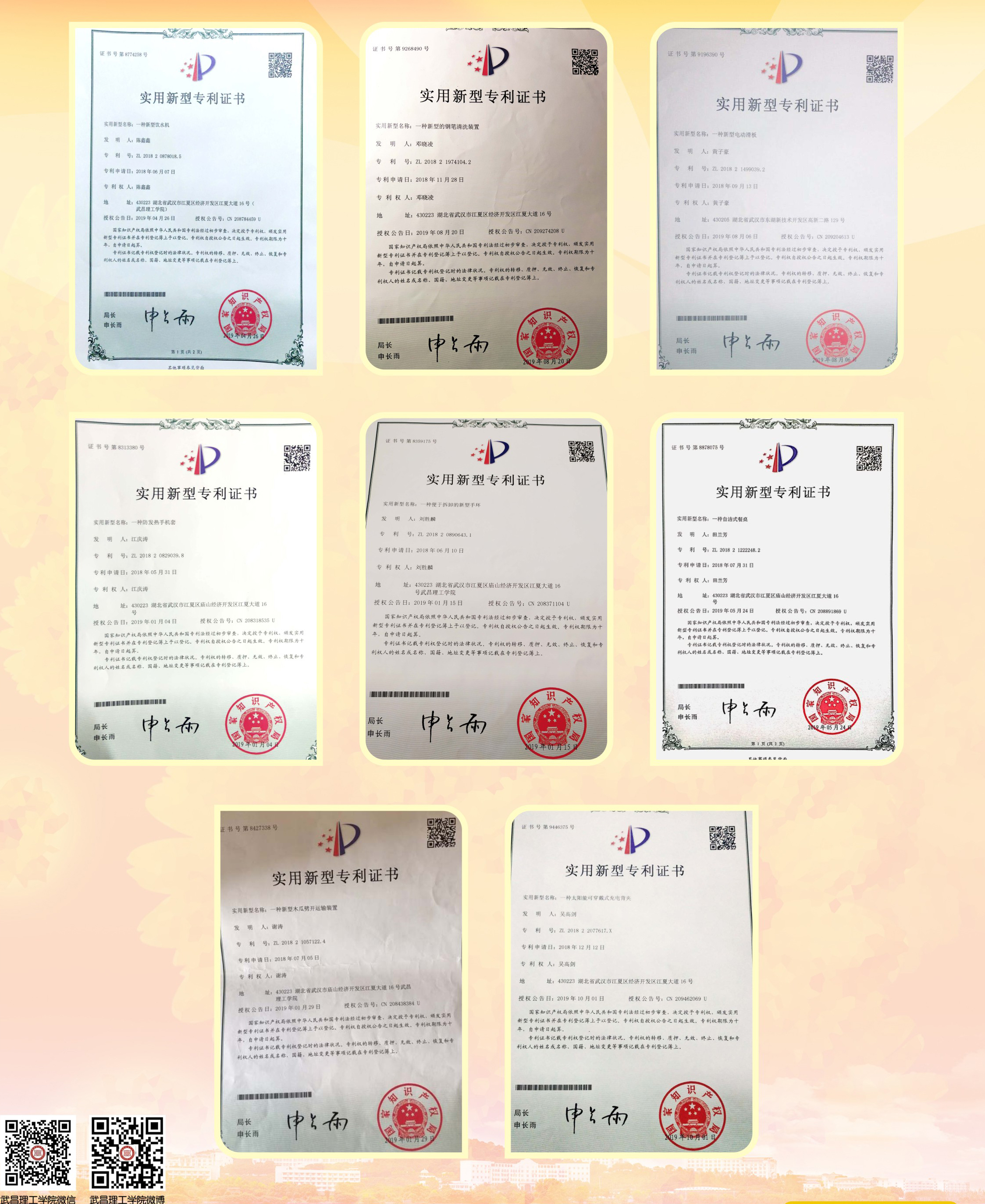 2019学生获批实用新型专利情况