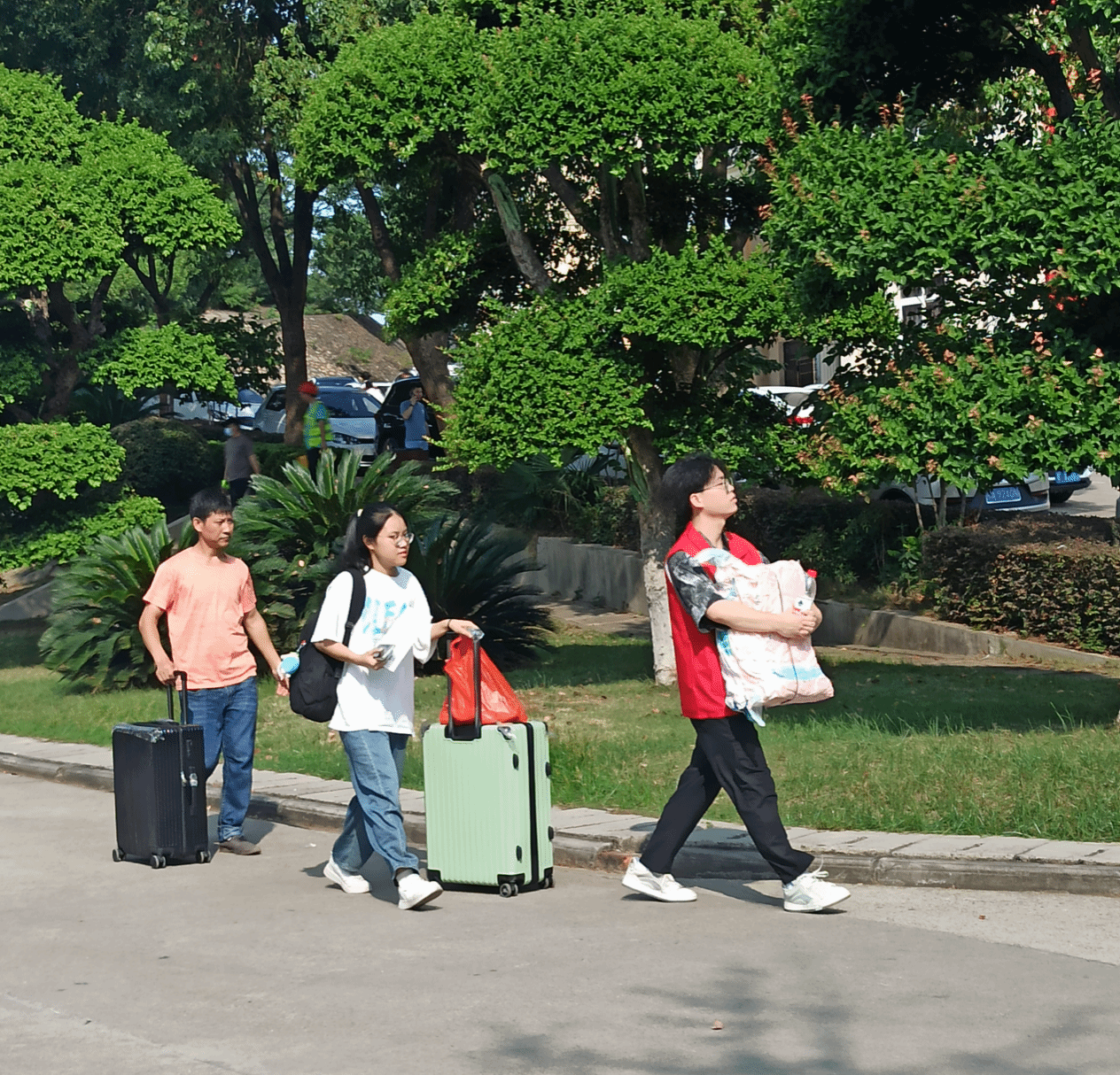 随着新生及家长们陆续进入校园,志愿者们按照分工走上工作岗位,带领新生按顺序依次完成缴费、资格审查、进班信息统计、住宿及校园一卡通办理,最后找到宿舍楼栋,至此,一名新生的入校流程就全部完成了。志愿者们往返奔走于宿舍和迎新点,帮助新生搬行李,在引导新生的过程中,他们积极地向学生及家长介绍着学校和学院,耐心地回答他们的问题。“学长,宿舍离上课的地方远吗?”“学长,我们专业怎么样?”“学长,新生有早晚自习吗……”