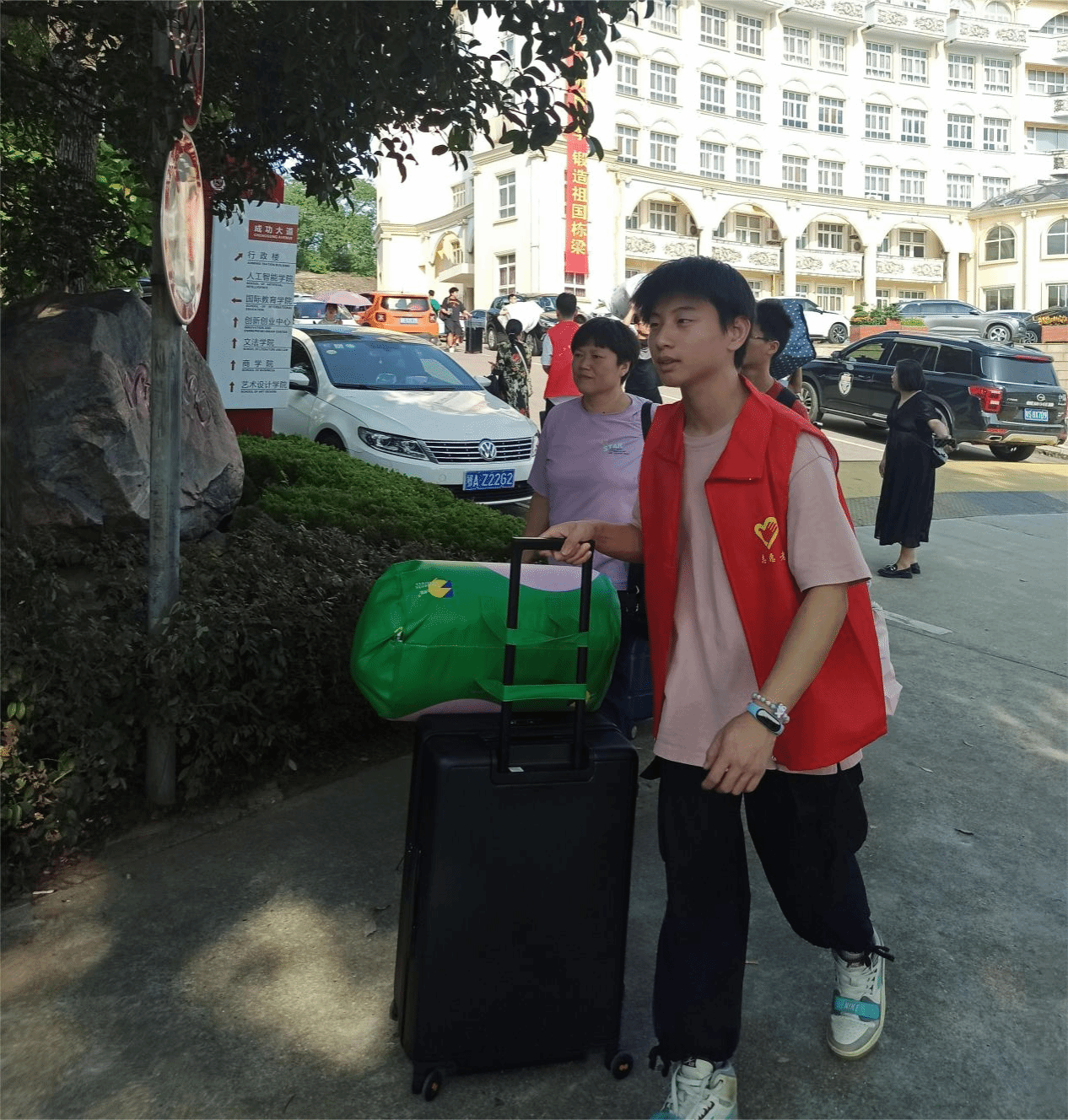 9月6日下午13时,烈日当空,第一组的志愿者队伍已经在学院门口集合完毕,70net永乐高学工第一党支部书记张夏老师向志愿者们说:“我们作为党员,要有着舍己为人的奉献精神,心中要时刻铭记为同学服务,为群众服务。此次迎新工作室外温度较高,迎新任务量较大,新生较往年多,大家一定要注意防暑,在身体不适时一定及时向后勤保障小组反应,各小组一定要各司其职,确保此次活动的圆满完成。”随后,他们身穿红马甲,党员佩戴党员徽章,以最饱满的热情和最贴心的服务开始迎接23级新生们。