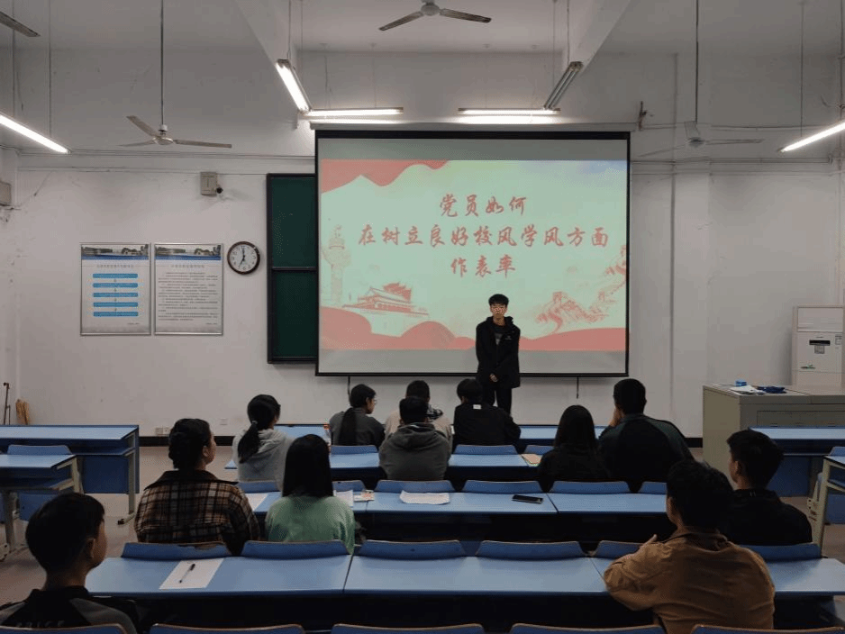 围绕“党员如何在树立良好校风学风方面作表率”这一主题,党校学员们纷纷上台分享自己对主题的认识。其中,学员王琛钰说到:“校风与学风是学生思想道德品质、学习精神与综合素质的重要体现。大学生党员要在树立良好校风学风方面作表率,要做到以身作则,严格要求自己,保证自身品行端正,始终做到言行一致,表里如一。”