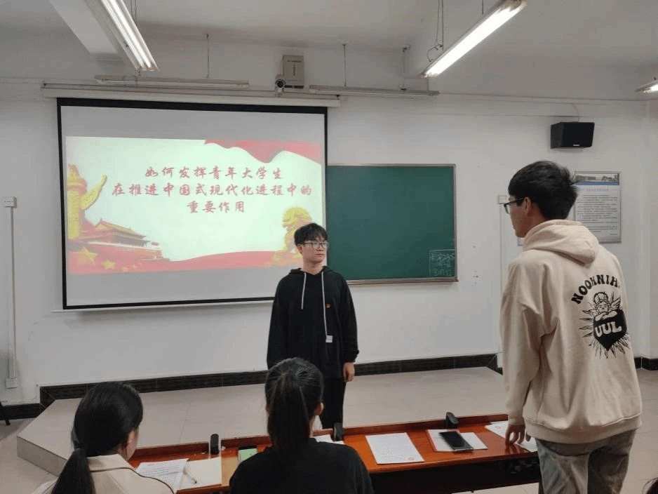 活动伊始,支部副书记王佳奇同志详细介绍本次主题讨论的主题和相关事宜,主题讨论围绕“谈谈新形势下如何认识与践行共产党员标准,发挥党员先锋模范作用”和“如何发挥青年大学生在推进中国式现代化进程中的重要作用”两个主题展开讨论,党校培训班学员们依次上台发言,交流自己对主题的认识并分享感悟。