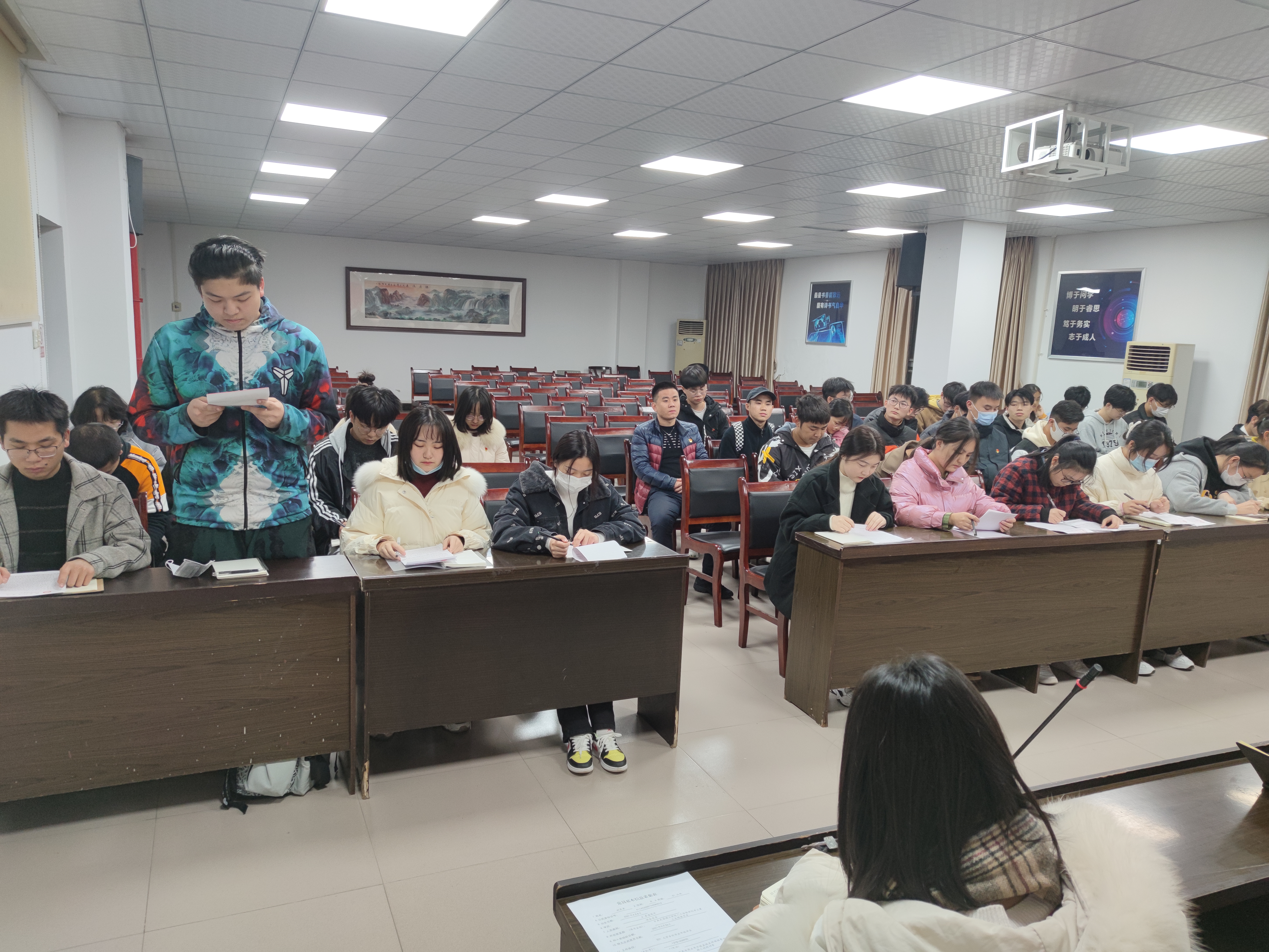 党内同志对这批发展对象进行了充分讨论,党内同志积极发言,分别对这12名同志在考察期间的态度和日常的思想、学习、工作、生活方面予以表扬和肯定,同时也就支部活动及生活所观察到的给予了他们诚恳的建议和期望。发展对象们均十分感谢党的教导和各位同志给予的建议,并表示在未来的日子里会改正自己的问题,在接下来的学习与生活中不断改正自身缺点,努力学习理论知识,做好党员担当,为共产主义事业奋斗终身。最后,党支部内正式党员进行了无记名投票。发展对象们端正的入党动机和积极的表现赢得了书记和现场党员同志们的一致认可,每位发展对象均以全票通过,正式成为中共预备党员。王艳书记代表学工第三党支部对12位同志能够正式加入党组织表示热烈祝贺。