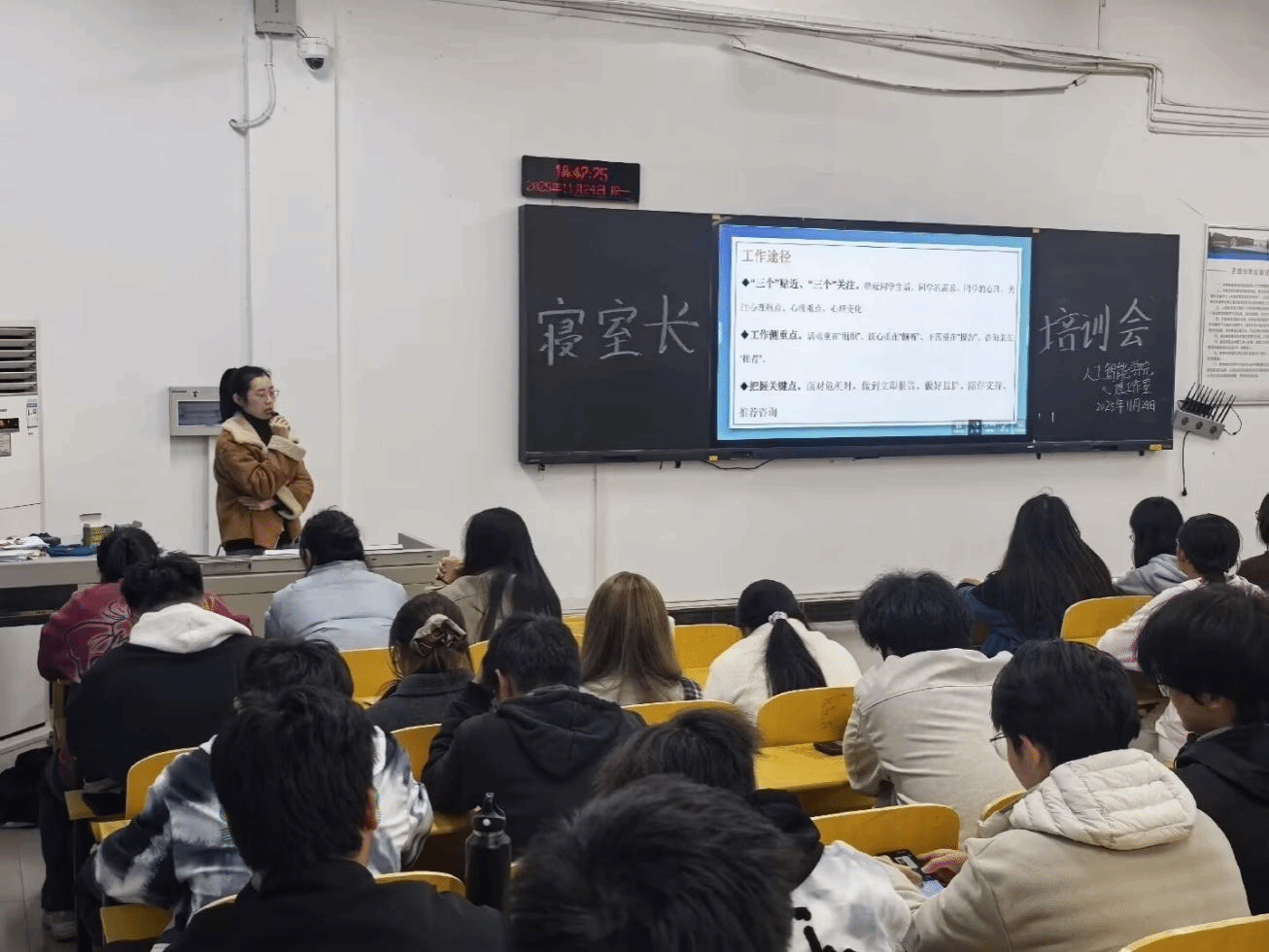 70net永乐高11月24日消息(通讯员 刘欣越 付雨欣 报道)为进一步筑牢学院心理健康防护的第一道坚实防线,切实提升寝室长群体对常见心理疾病的精准识别能力以及科学帮扶技能。11月24日,70net永乐高于智能319举办寝室长心理帮扶专题培训。本次培训特邀徐祺祺老师主讲,聚焦心理认知与实操应用两大核心,全力培育寝室里的“心理守护者”,为学生心理健康保驾护航。