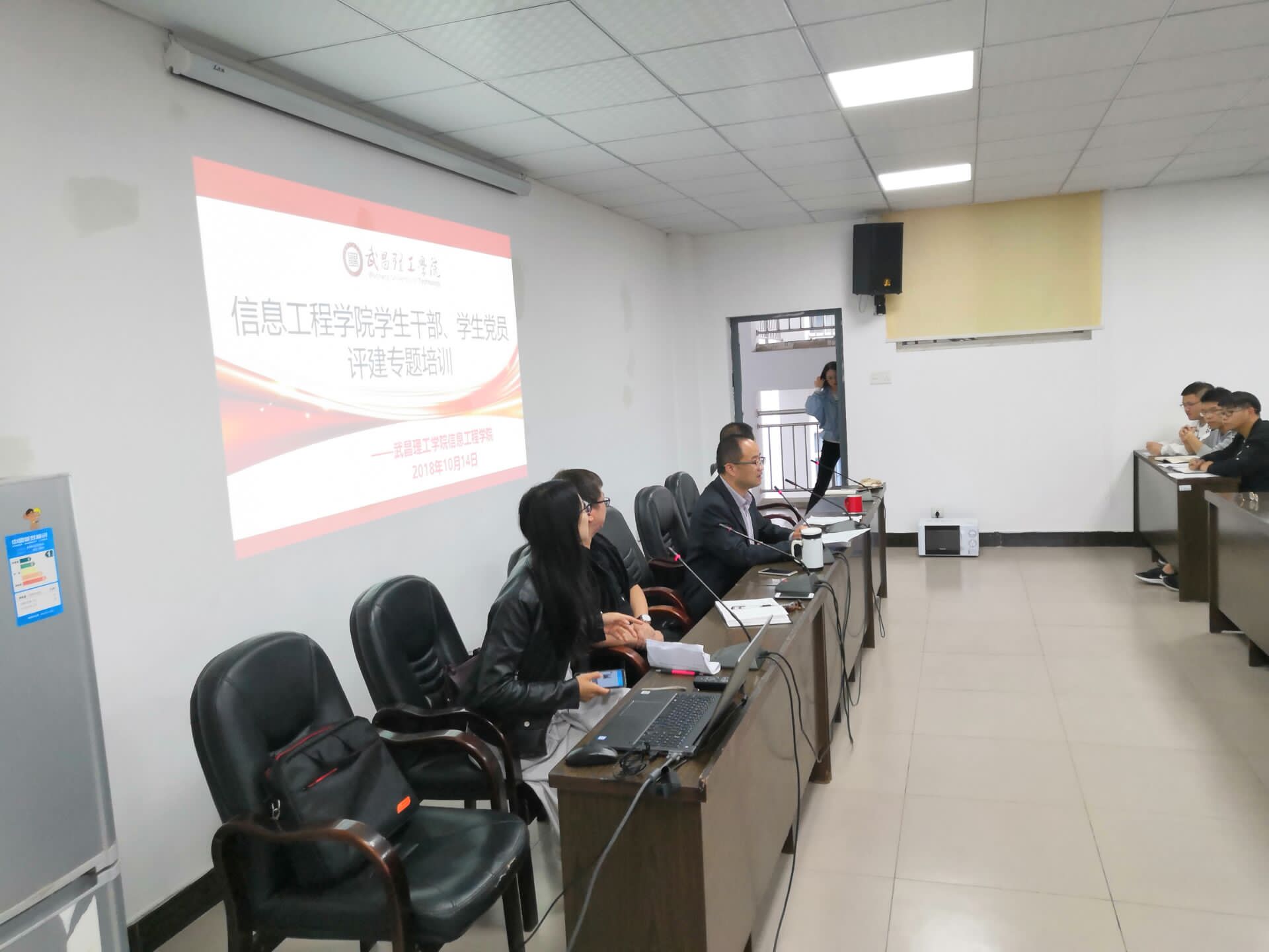 (通讯员 付俊虎 报道)10月14日下午两点整,团学学生组织,学生党员培训会于信息工程学院311教室成功举行。参加此次培训会的成员包括学院各位领导、团学学生组织和学生党员,共计百余人。