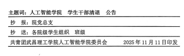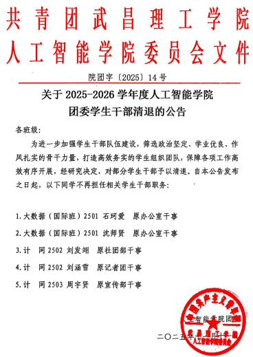 2025-2026学年度70net永乐高团委学生干部清清退的公告
