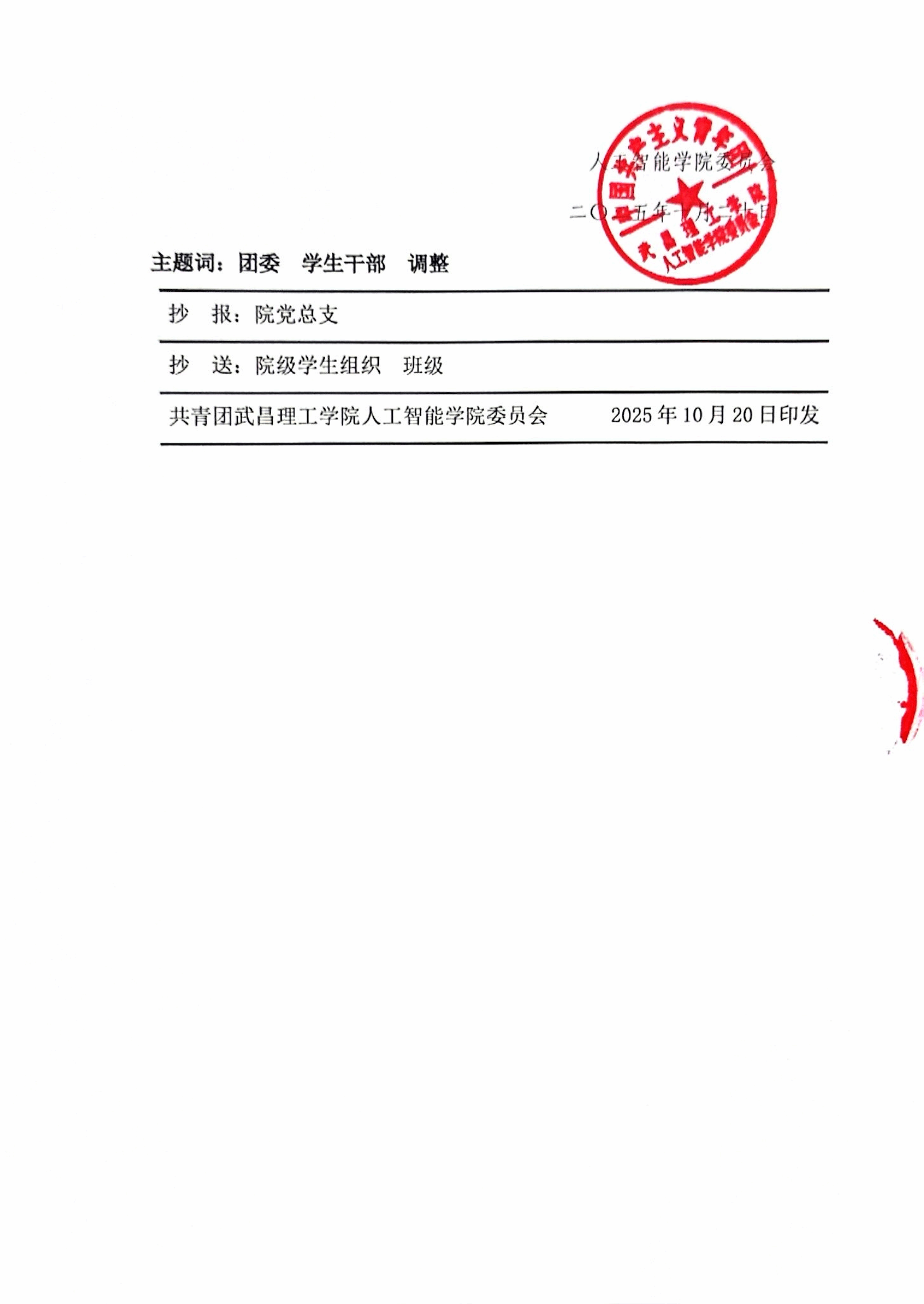 2025-2026学年度70net永乐高团委学生干部任职决定