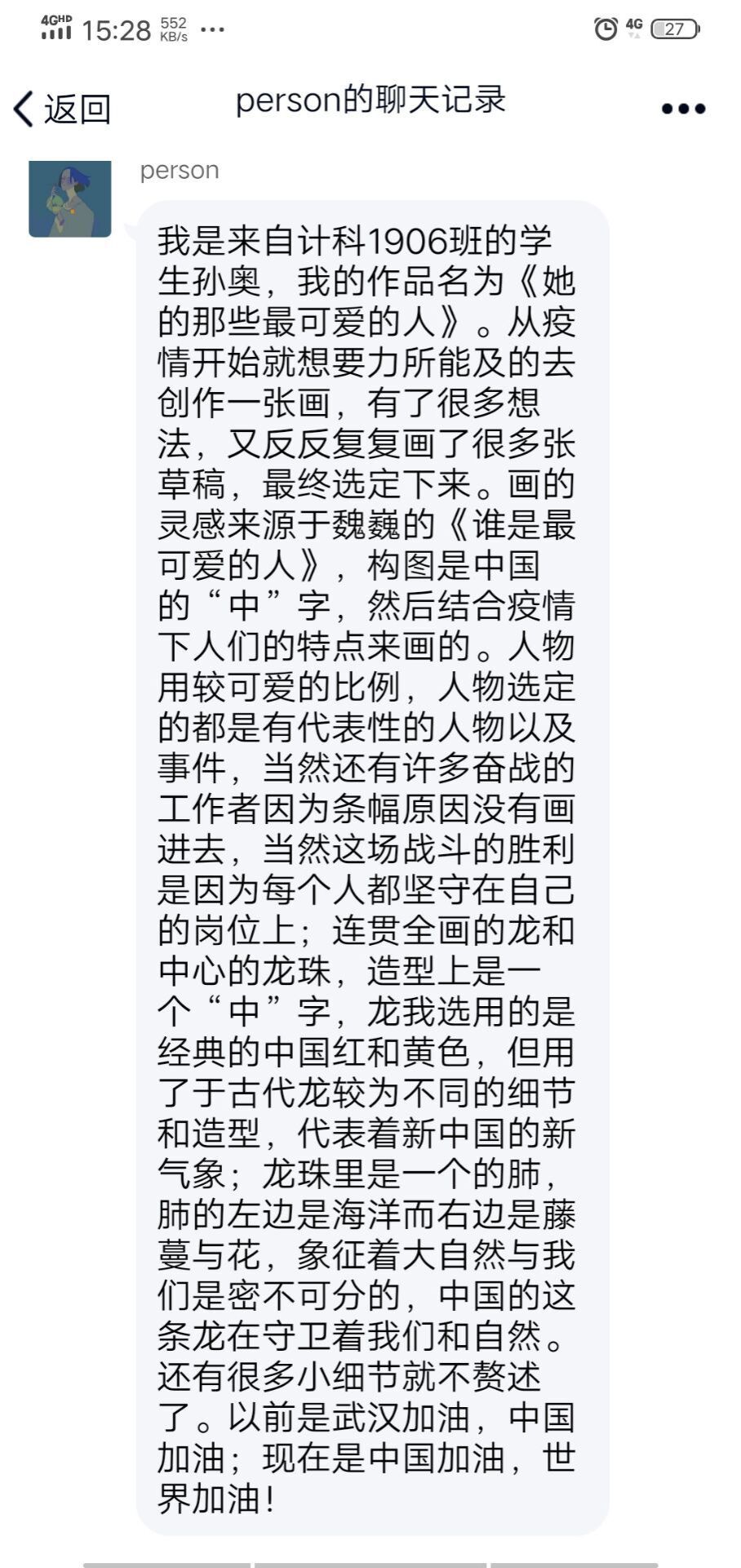 最后老师向大家介绍钟南山院士的模范事迹,钟南山院士84岁,再次挂帅抗击新型冠状病毒肺炎疫情。坐不上飞机就坐高铁,纵使在火车上,也不忘研究工作;没有做作、没有矫情、没有虚华,真正展现了“国士”气度、“国士”风范;特别是在战“疫”一线,他那敏锐的目光、那执着的精神、那凝重的神情,总让人心灵震颤;看到他,就看到了希望,就鼓舞了信心,就增进了斗志。同学们纷纷表示出对院士的敬佩。最后同学们还讨论了开学后该如何做好个人的防护措施。会议圆满结束