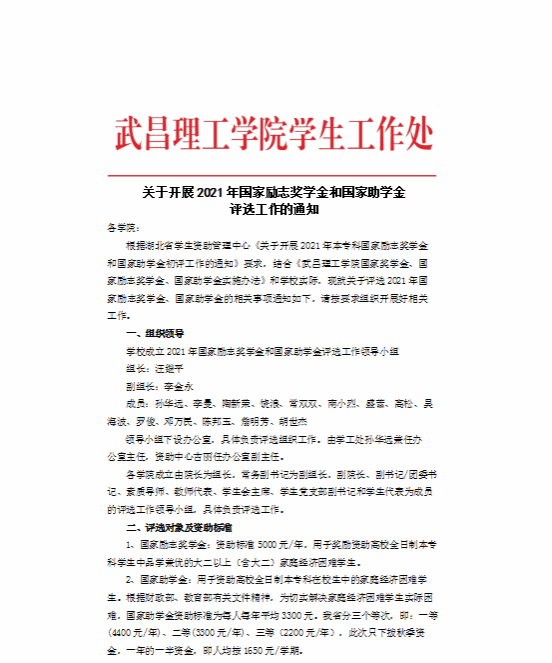 关于开展2021年国家励志奖学金和国家助学金评选工作的通知