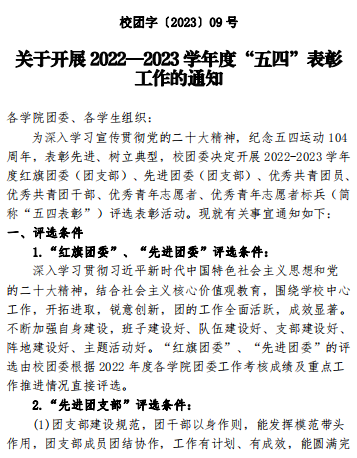 关于开展2022-2023学年度“五四”表彰工作的通知