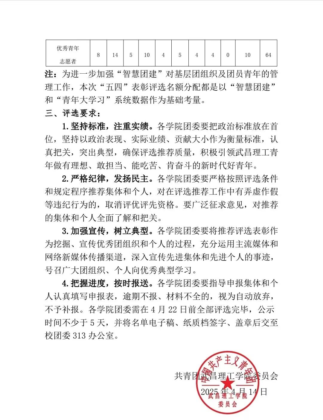 关于开展2024—2025学年度“五四”表彰工作的通知