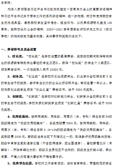 关于开展2020—2021学年度学生评优评先工作的通知