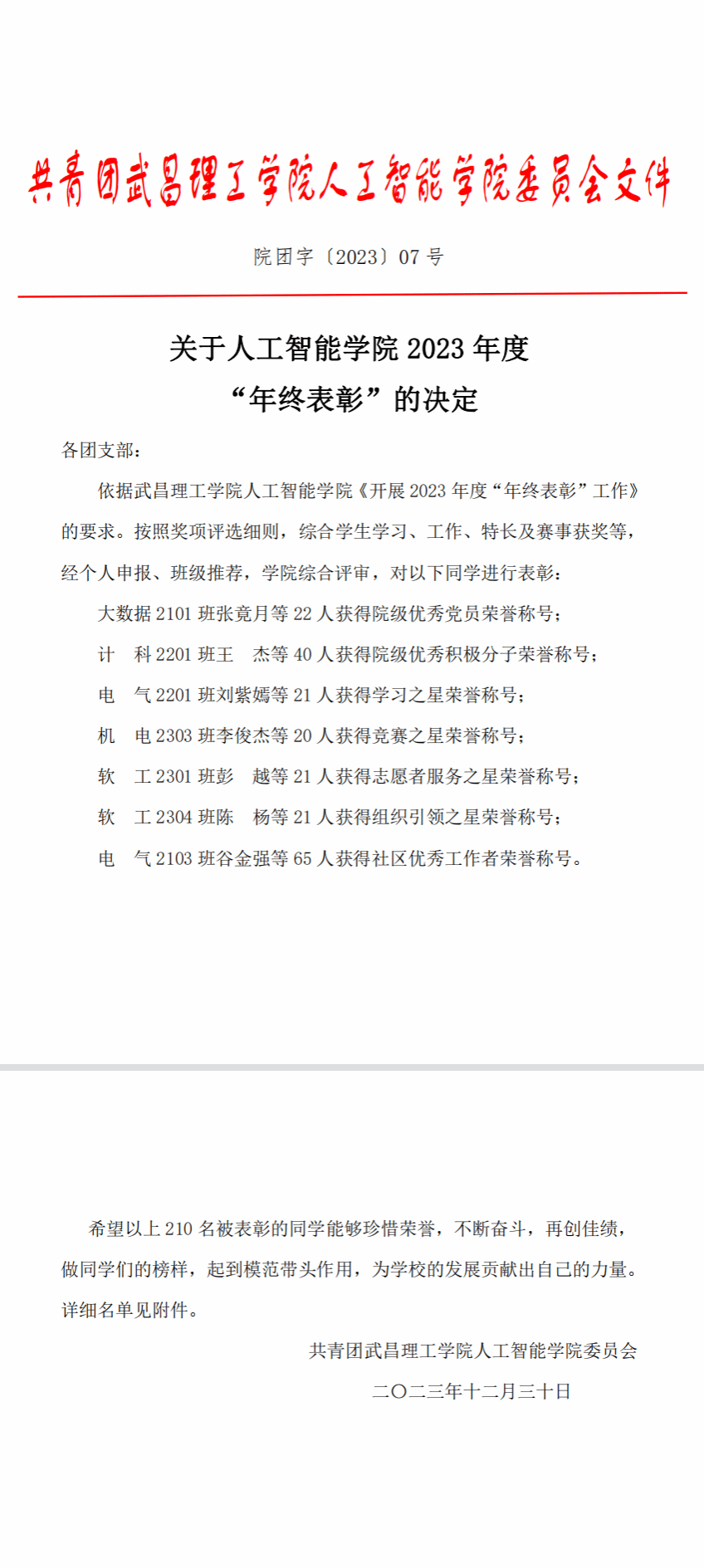 70net永乐高2023年终表彰决定