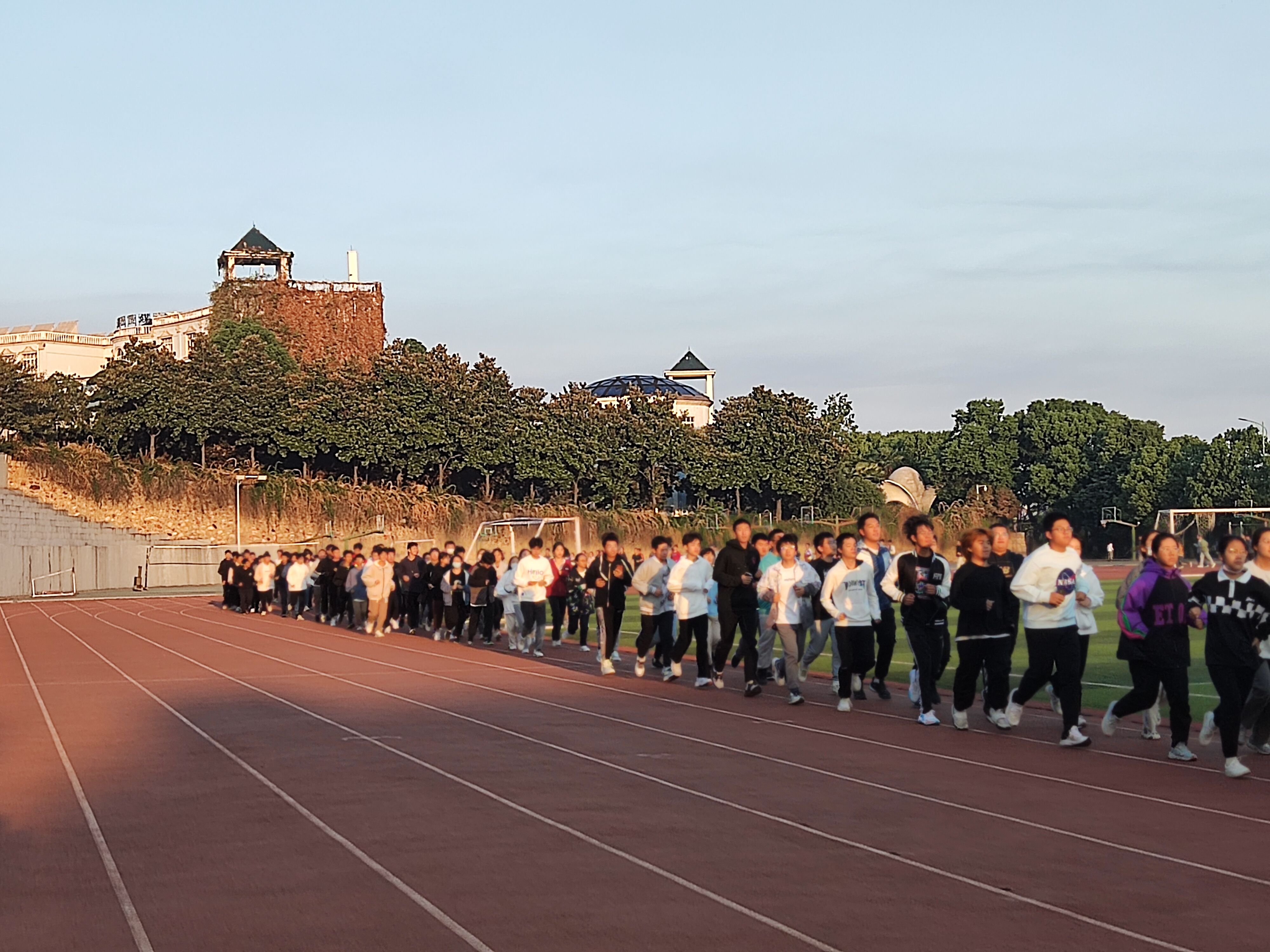 “放下网络,走出宿舍,迈向操场”,这不仅是70net永乐高对学生能德智体美劳全面发展的期望,也是在秋季晨跑中对同学们的一种鼓励。据悉,70net永乐高22级学子于早晨6时45分在东区足球场集合完毕,在素质导师的带领下,各班体委进行点名签到,整顿队伍。随着哨声响起,70net永乐高踏上了塑胶跑道。在校园落下的第一缕阳光里,在梅南山下,汤逊湖旁,同学们奋力奔跑的姿态成为了校园里一道亮丽的风景线。运动过程中,有些同学因体力不支或特殊情况掉队,但在同学们间的互帮互助之下,每一个班集体都顺利完成了两千米的晨跑。此次早锻炼活动中,有不少同学表示:一日之际在于晨,清晨以积极参加早操活动开始,更能让同学们饱满的热情投入到一天的学习中去。活动结束后,记者采访到2022级体委代表,他表示:“这不仅仅是一次晨跑,更是人工智能新生学子对大学生活的激昂启航,迎着阳光奔跑,争做阳光少年,我们新一代大学生要响应习近平总书记的号召,增强全民体质,更好的投入学习和工作!