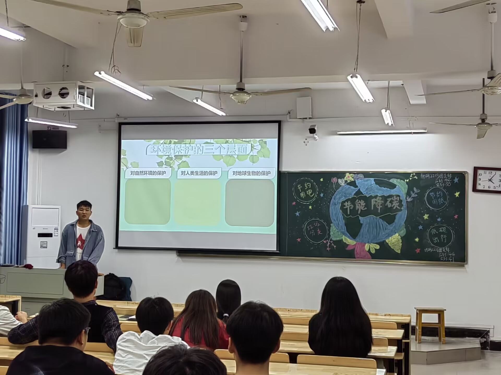 据悉,本次主题教育班会由各班团支书主持开展。活动期间,主讲人以“环保离我们的生活有多远?”这一问题来开场,引发了同学们激烈的讨论。部分同学认为环保离自己很遥远,不需要去特别注意它;另一部分同学则认为环保是每个公民应尽的责任,它出现在我们生活的每一处细节里,我们应该格外地重视它。随后,主讲人又以一则短视频让学生直观地看到全球气候变暖、臭氧层被破坏、生物多样性减少等环保问题。同学们看完后纷纷表示我们应该爱护我们共同生存的地球村,增强环保意识,共同创造一个和谐的家园。活动尾声,主讲人以个人的角度出发,向同学们分享了许多环保小技巧,提倡学生争做环保使者,主动去做一些力所能及的事情来防止生态环境的进一步恶化。活动结束后,记者采访到智能2201班张奕墨同学,她表示“此次活动让同学们了解到当今全球生态环境局势的严峻性,保护环境的重要性以及该如何去保护环境。生命只有一次,地球只有一个,我们每个人都需要去守护地球,守护我们唯一的家。”