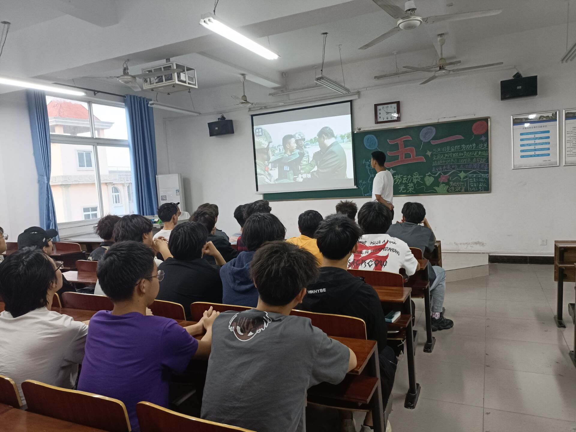 据悉,此次班会由各班团支书主持召开。班会前,团支书带领宣传委员、组织委员及生实委员提前进入教室,绘制板报、打开PPT及打扫教室卫生。班会伊始,各班团支书带领同学们了解有关五一国际劳动节与五四青年节的知识,学习五一国际劳动节与五四青年节的新时代精神内涵。与此同时,同学们纷纷举手表达自己对五一国际劳动节与五四青年节的认识。紧接着,团支书为同学们播放有关五一国际劳动节与五四青年节的视频,同学们举手表达观看感。同时,团支书组织同学们以“作为新时代的大学生应该如何弘扬爱国与爱国精神”为主题讨论,同学们纷纷表达自己的看法,并进一步表达出自己会如何展现出新时期青年学生的青春活力风采。最后,各班团支书进行总结:“五一国际劳动节是纪念劳动人民为争取到合法权益的一天,是人类文明发展的一大步,同时提醒着人民要有不屈不挠的共同奋斗精神。五四青年节则是五四精神的继承与发展,更是当代中国青年朝气蓬勃的象征。因此,我们通过此次班会学习五一国际劳动节与五四青年节的新时代精神内涵,纪念五一国际劳动节与五四青年节。同时,我们要多参加义务劳动活动,在实践中弘扬发展义务劳动精神,展现出新时代青年学生的青春活力风采。”至此,本次班会落下帷幕。