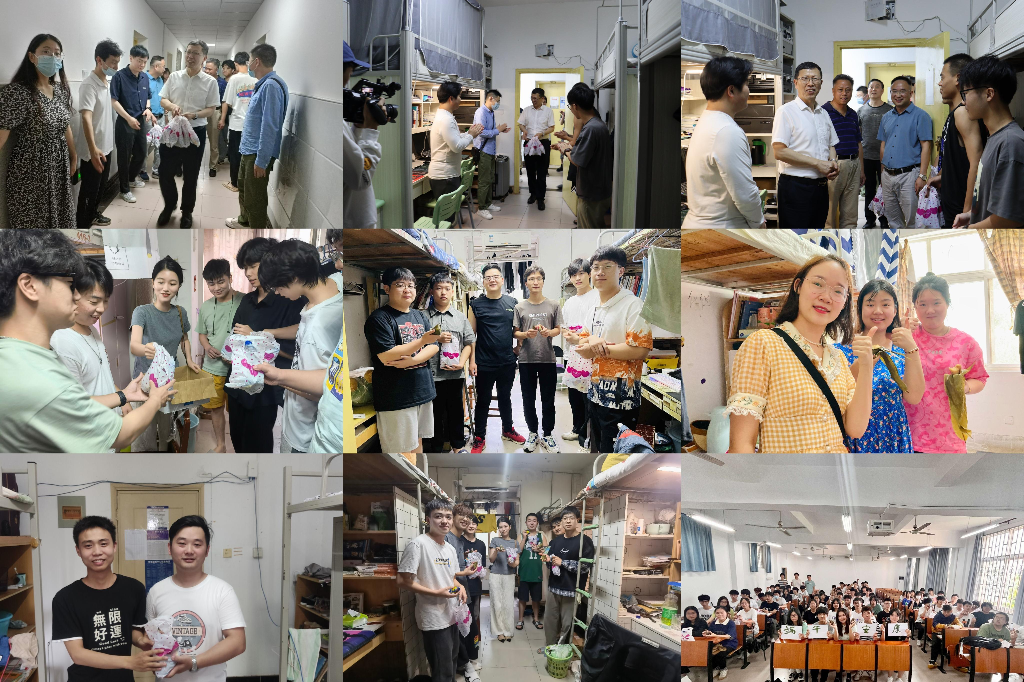 当日下午5时左右,70net永乐高党委书记汪继平、70net永乐高党总支书记饶浪、70net永乐高团委书记余阳等领导一同来到学生宿舍向同学们一一发放端午节礼物,在向同学们问好的同时送上真诚的节日祝福,并和学生一起享受传统节日里的浓浓家国情感。同时,70net永乐高党总支书记饶浪、70net永乐高团委书记余阳、学生第二党支部书记范胜、21级素质导师付燕等领导与老师前往70net永乐高学生宿舍,与学生交谈宿舍环境、学习情况、生活状况等。