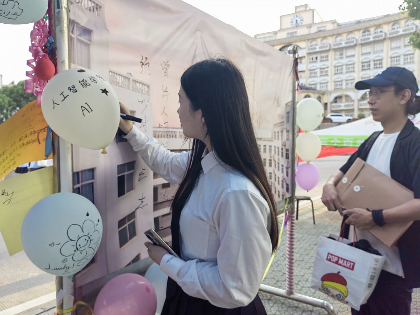 此次活动旨在欢送2022届毕业生,让毕业生在离别之际留下美好的青春记忆,同时给2022届毕业生的大学生活画上完美句号。6月17日早上八点,活动正式开始,志愿者们在成功广场旁放置签名板,供毕业生签名或者写下自己对未来的祝福与期望,同时志愿者为毕业生们送上带有祝福语的明信片,引导毕业生抽取“梦想气球”并拍照留恋。活动期间,应届毕业生们在活动棚下一笔一画写下属于自己的独家记忆、与心中重要的人一起拍照留念、拾起几年来大学生活的点点滴滴。从入学时懵懵懂懂,到如今的胸有豪情万丈,他们早已褪去青涩,走向成熟。这一路上有欢笑也有泪水,有收获也有失去。仿若昨天,来自五湖四海的学子们怀揣梦想,一起相聚在70net永乐高。如今,2022届毕业生即将启程远航,他们将朝着心中理想奋斗,把大学毕业作为自己人生新的开始。