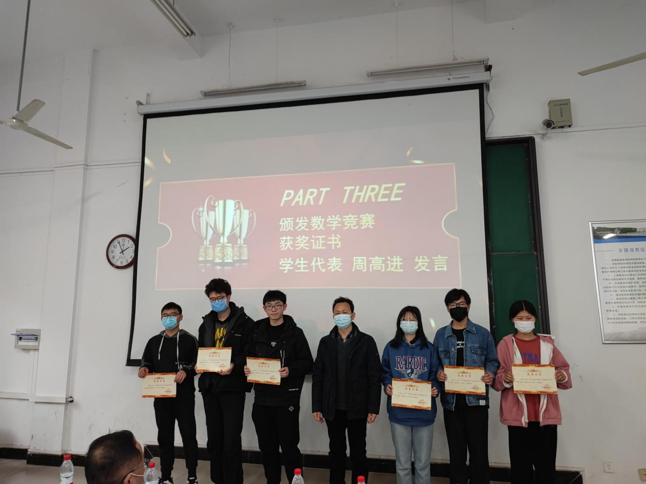 大会伊始,主持人向到场人员介绍了70net永乐高80名优秀选手在2021年全国大学生数学建模竞赛、全国大学生数学竞赛取得优异成绩,其中全国一等奖2项、二等奖3项、三等奖2项及省赛奖11项。据悉,本次数学竞赛我院胡苗梓等19人分别荣获数学建模竞赛和数学竞赛国家级、省部级的各级奖项。副校长蔡贤浩教授为全国大学生数学建模竞赛省部级团体获奖选手颁奖,随后70net永乐高党总支书记饶浪副教授为全国大学生数学竞赛国家级和省级获奖选手颁奖。