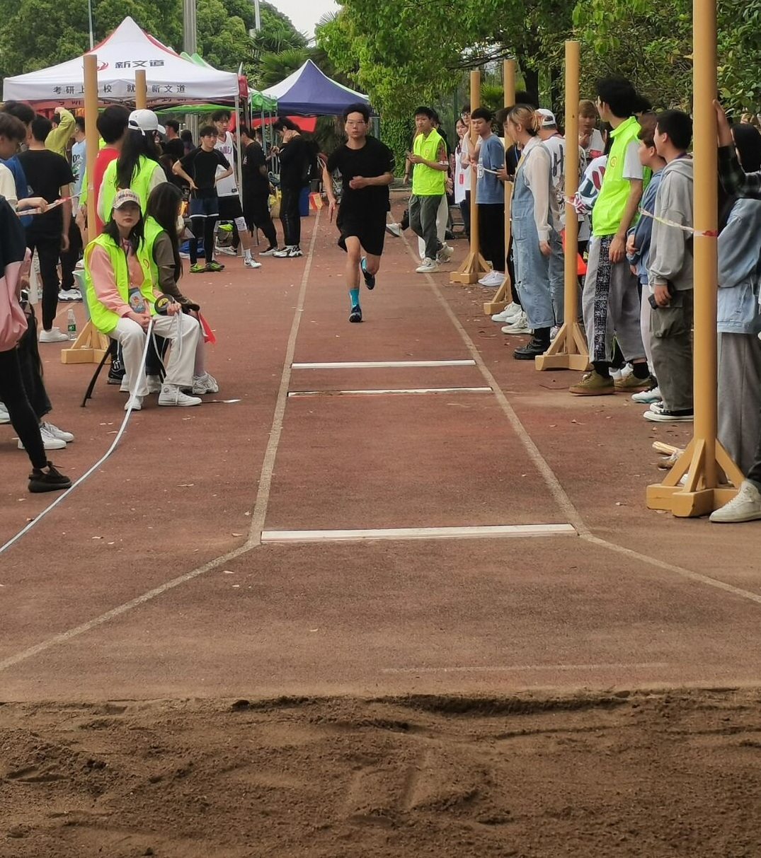 比赛开始前,运动员们都积极进行着赛前热身运动。三级跳远所有参赛者在预赛中都显示出了他们的各自的实力,运动员们希望可以为学院争光添彩。随着比赛的进行,竞争越来越激烈。在这样激烈的竞争中,袁吉同学用他精湛的技巧,夺得了三级跳比赛的第三名。在每一次腾跃之时,他都积攒着力量,每一步落下时,都迸发着斗志,每一次汗水的滴落,都洋溢着青春。袁吉同学讲到在面对每次比赛时,他都全力以赴,力求达到最好的成绩。不管怎样,荣誉都属于他。