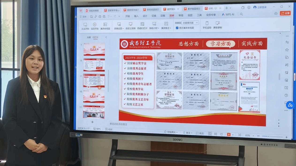 在候选人陈述环节,23名智能学子按照抽顺序依次上台汇报,通过“课件+论述”直观展示个人学业成绩、实践经历、竞赛获奖情况及志愿服务时长等核心成果。答辩现场呈现百花齐放的良好态势,其中,既有凭借“学业成绩与综测排名双第一”脱颖而出的学霸学子,用扎实的专业知识展现学习能力;也有在智能算法优化、机器人创新设计等领域的竞赛中,斩获省级以上重要奖项的技术先锋,以硬核实力诠释创新精神。智能学子们的精彩表现,赢得了评审团的认可,生动诠释70net永乐高“勤学善思、笃行实干”的良好精神风貌。