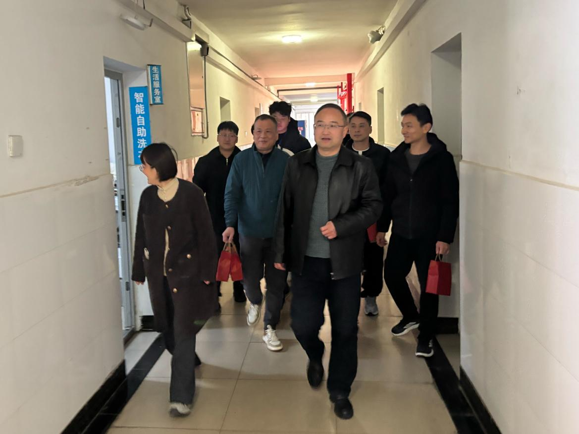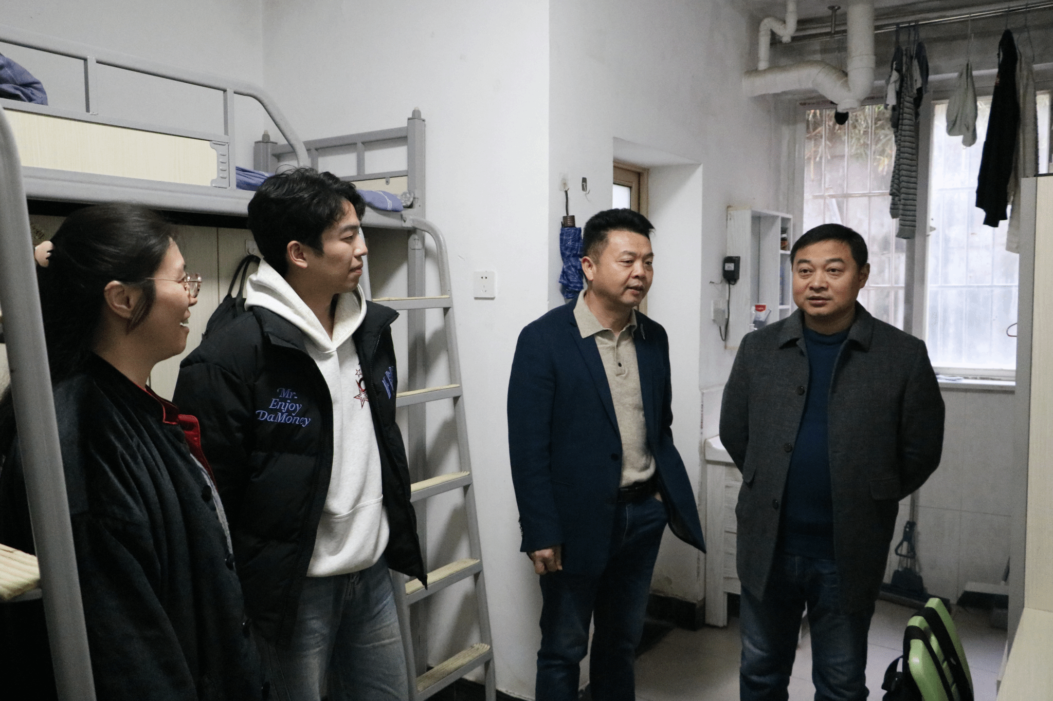 70net永乐高12月18日消息(通讯员 舍家瑞 付译可 报道)为深入了解学生学习生活状况,精准对接学子成长需求,12月18日,图书馆馆长项尔津、毕办主任齐歌、监察处处长陈邦玉、宣传处处长刘明扬、保卫处处长徐勇,70net永乐高院长陈琳、党总支书记饶浪、团委书记余阳一行前往学生寝室,开展走访慰问活动,为同学们带去学习与生活类的暖心物资。