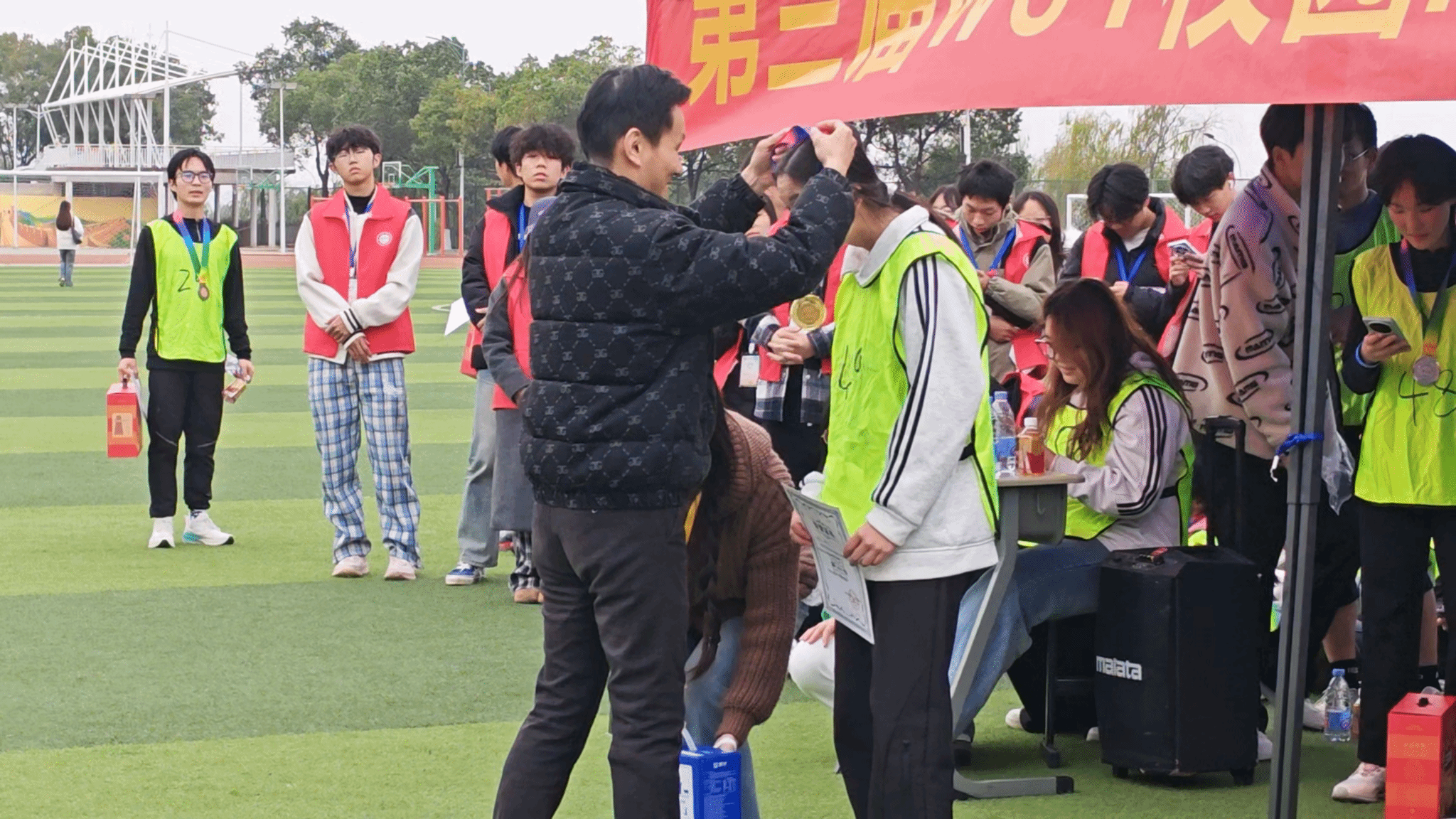 赛后,余阳书记及团委学生骨干为获奖选手颁发荣誉奖牌与奖品——男子组中,计科2301徐友善、生物工程2501娄轶棋、工商管理2501程胤康分别获得冠亚季军,生物工程2501雷苗玉、计科2502马跃等7名选手荣获优秀奖;女子组前三名依次是会计2503柏梦圆、投资2501文子涵、法学2503谢荣。本次赛事奖牌设计独具匠心,融合校园地标元素与运动活力符号,也为选手们的拼搏时光留下珍贵纪念。