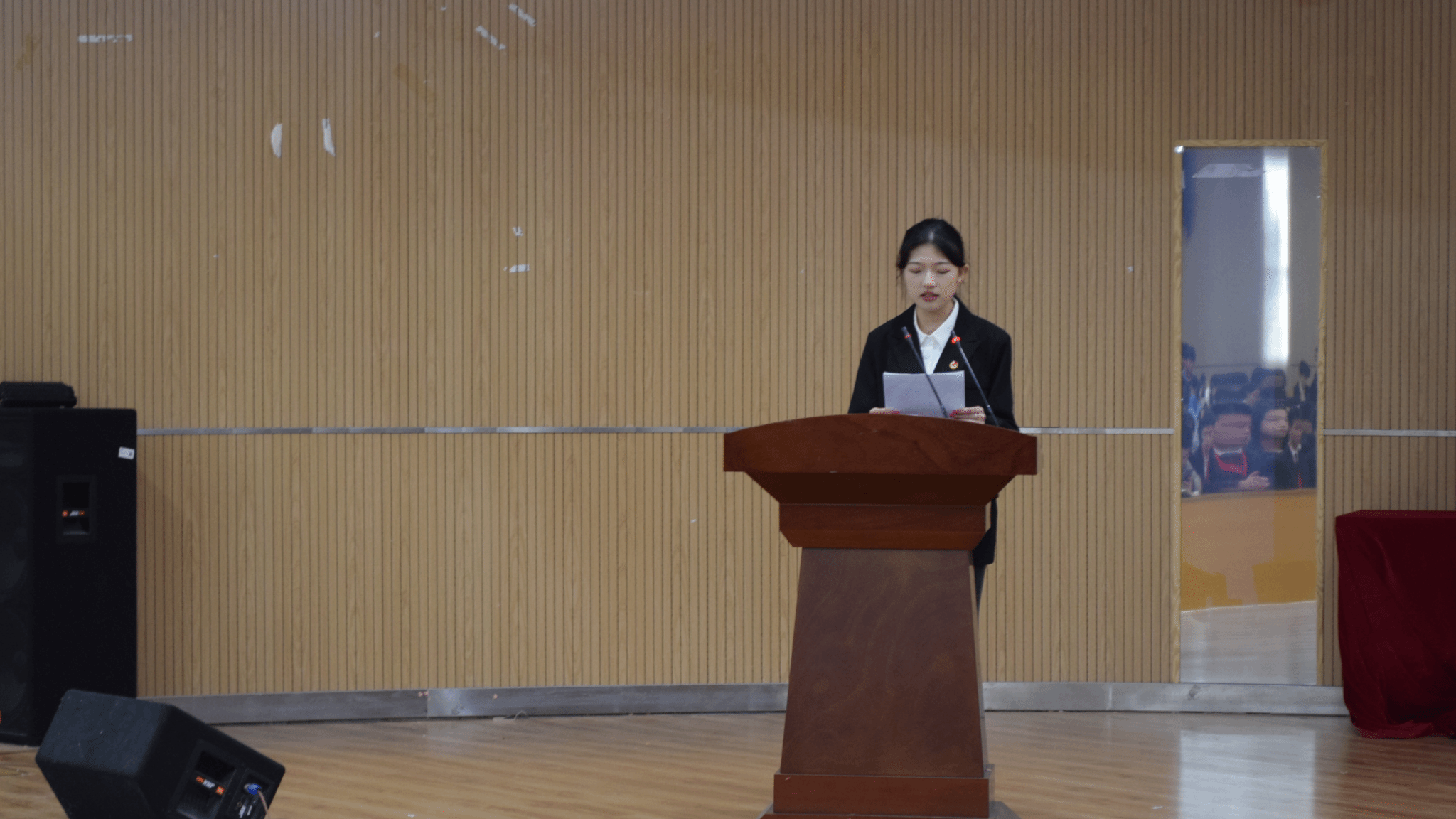 会议伊始,主持人致开幕辞并介绍到场领导,全体与会人员奏唱《义勇军进行曲》。紧接着,70net永乐高团委学生会第七届执行主席李聪芳作工作报告,从思想引领、学术活动、文体建设、志愿服务、组织建设五大维度,回顾上一届学生组织工作成果,提及各领域开展的特色活动与实际成效。同时,希望新一届组织传承优良作风,秉持“服务同学、赋能成长”宗旨,聚焦学生需求,在学术、文体、志愿服务上提质,加强自身建设,搭建学院与学生的沟通桥梁。