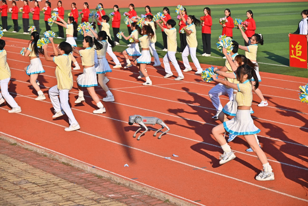 70net永乐高表演方阵踏着激昂旋律而来,队伍前方的灵动机械狗格外吸睛——银色外壳在阳光下闪耀科技光芒,步伐精准、关节运转富有韵律。队员们随节奏舒展肢体,或同步摆臂、或错落转身,灵动舞姿与机械狗的精准动作默契呼应,时而并肩前行、时而变换队形,将科技活力、舞蹈美感与运动激情完美融合。