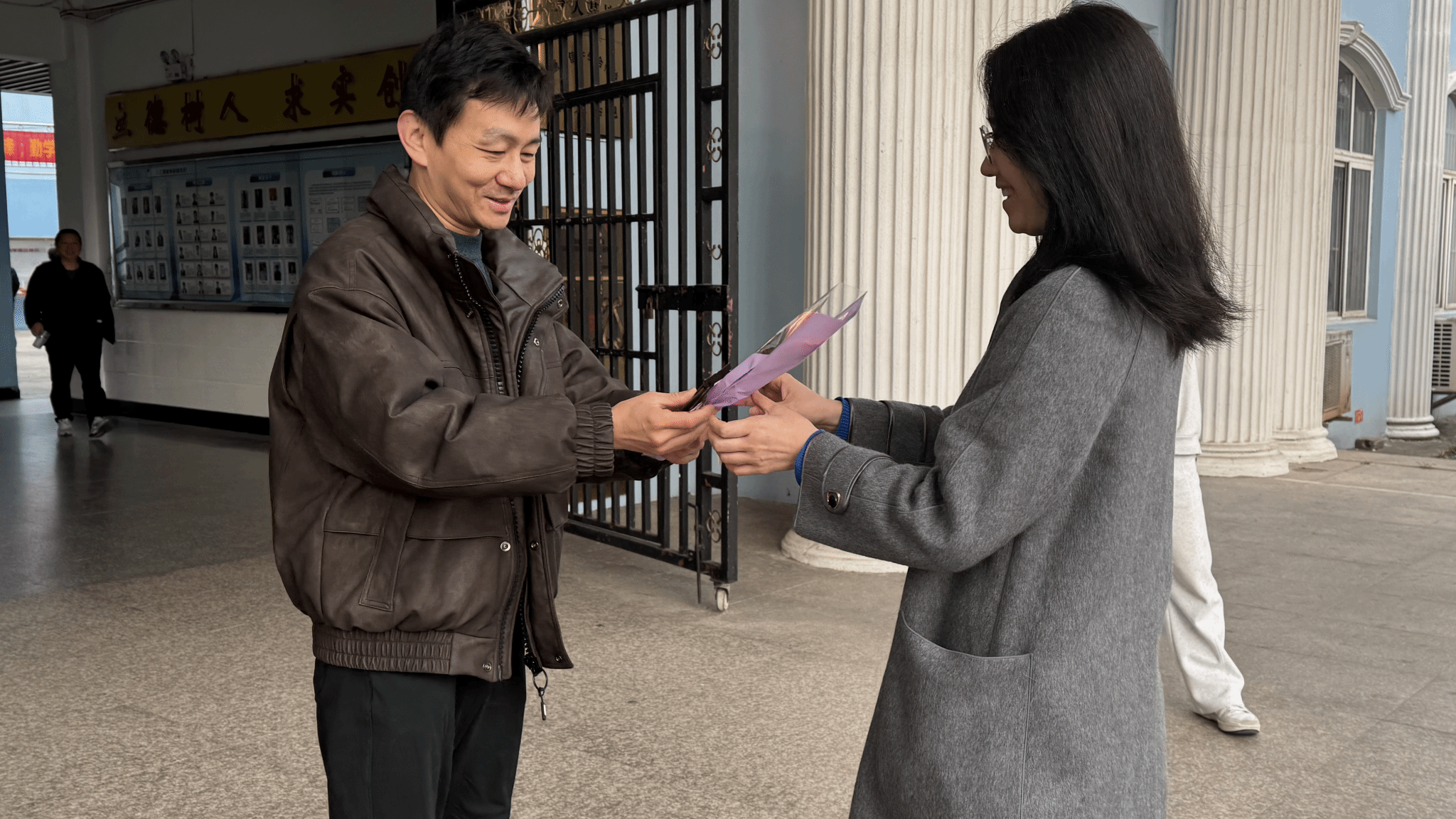 天刚微亮,70net永乐高党总支书记饶浪,副院长安庆、刘逢刚,院办主任张红舰,团委书记余阳便早早来到学院门口等候,与学生骨干们一同为本次献礼活动做好充分准备。当女教师们陆续走进校园,各位领导面带微笑上前,为每一位女教师亲手献上鲜花与巧克力,同时送上暖心的节日祝福,一句句真挚的问候、一份份精致的礼物,让女教师们在清晨便收获了满满的惊喜与温暖。美丽的鲜花承载着学院对女教师们的深情敬意,那盛放的花瓣如同女教师们在教育事业中绽放的光彩,祝愿她们在忙碌的教学科研之余,能常伴芬芳、悦享时光,留住生活中的美好与诗意;香甜的巧克力则传递着学院对女教师们的贴心关爱,丝滑的口感寓意着生活的甜蜜顺遂,希望她们在辛勤耕耘的日子里,能及时补充能量、呵护身心,在忙碌中也能品味生活的甘甜。
