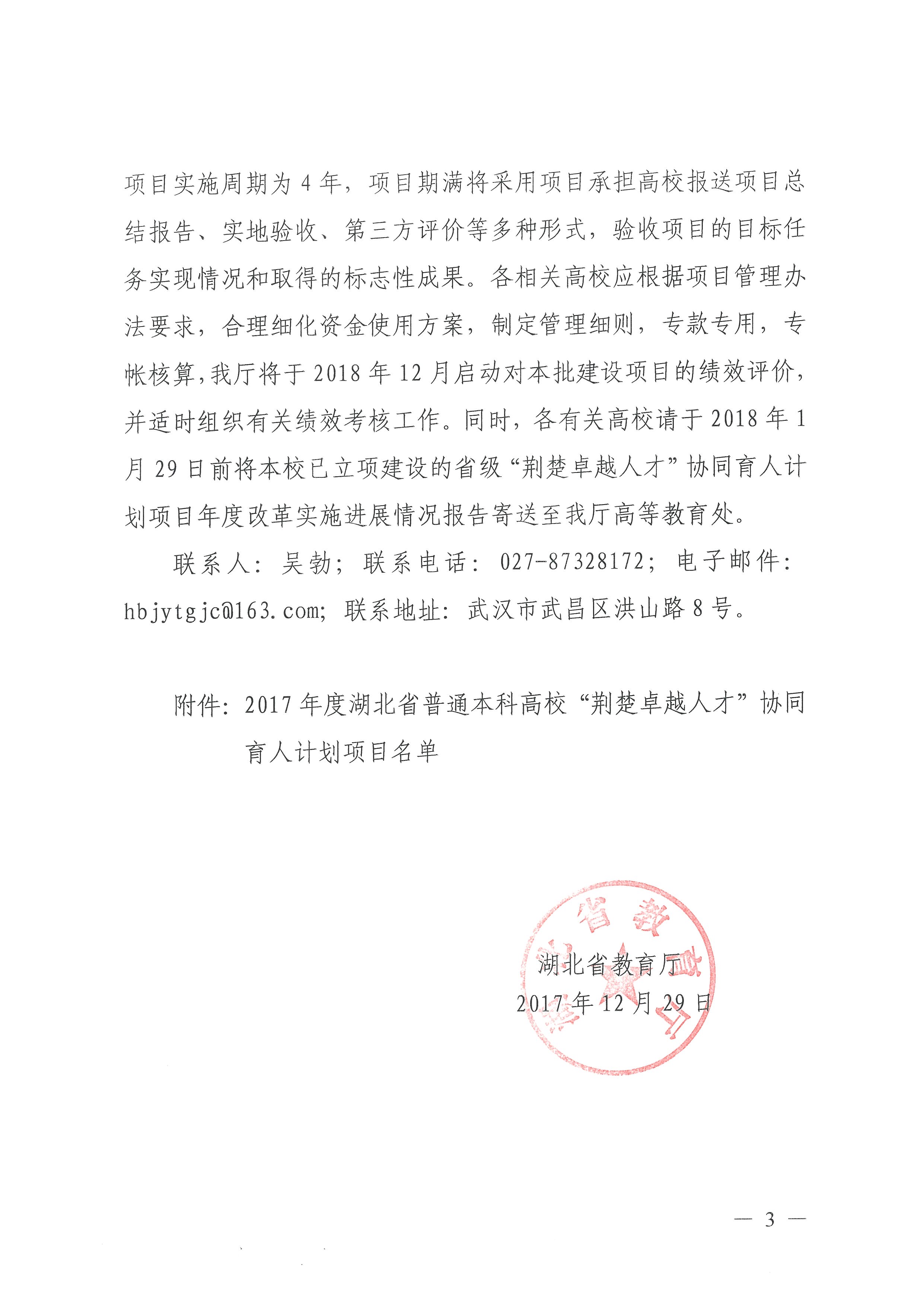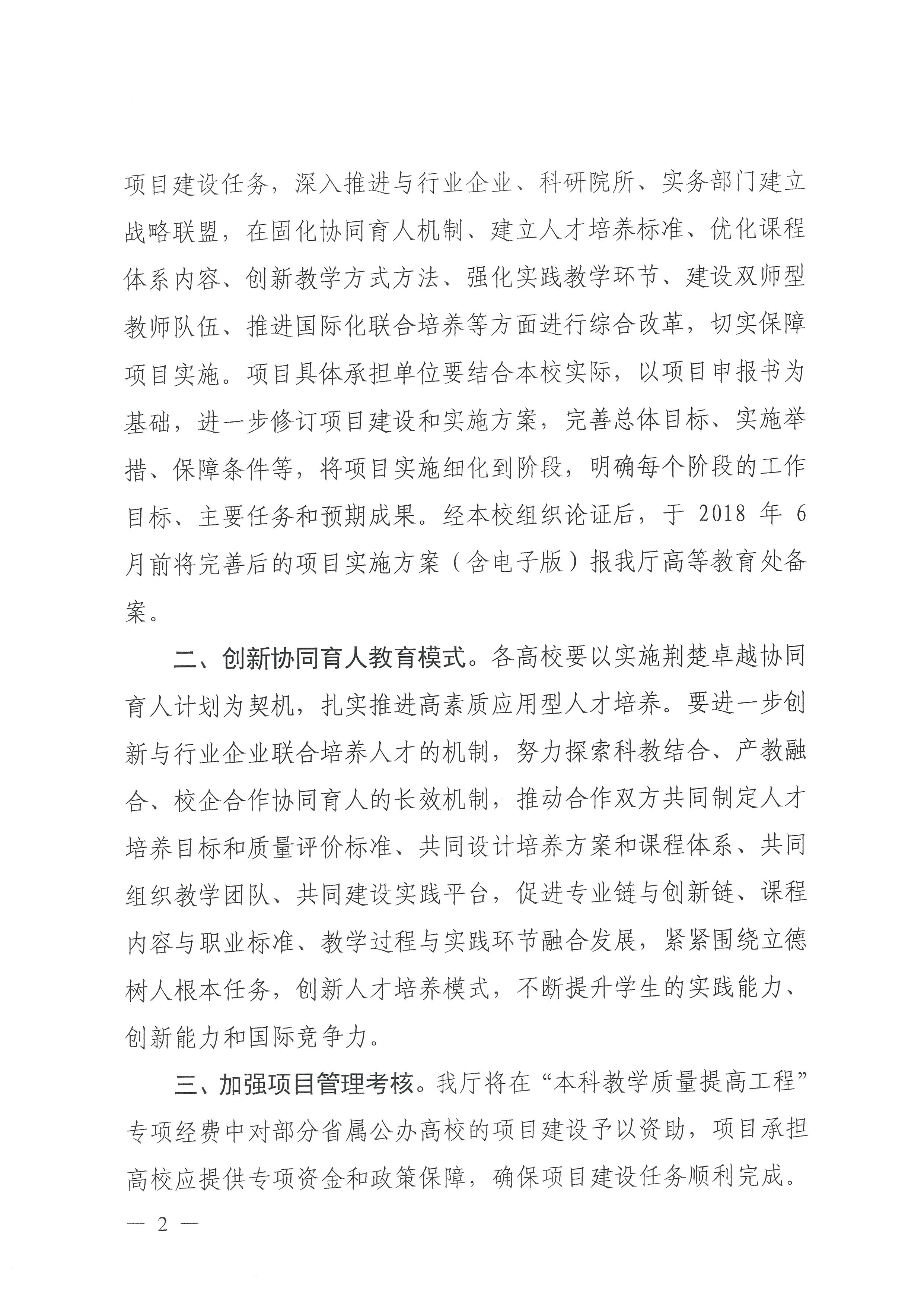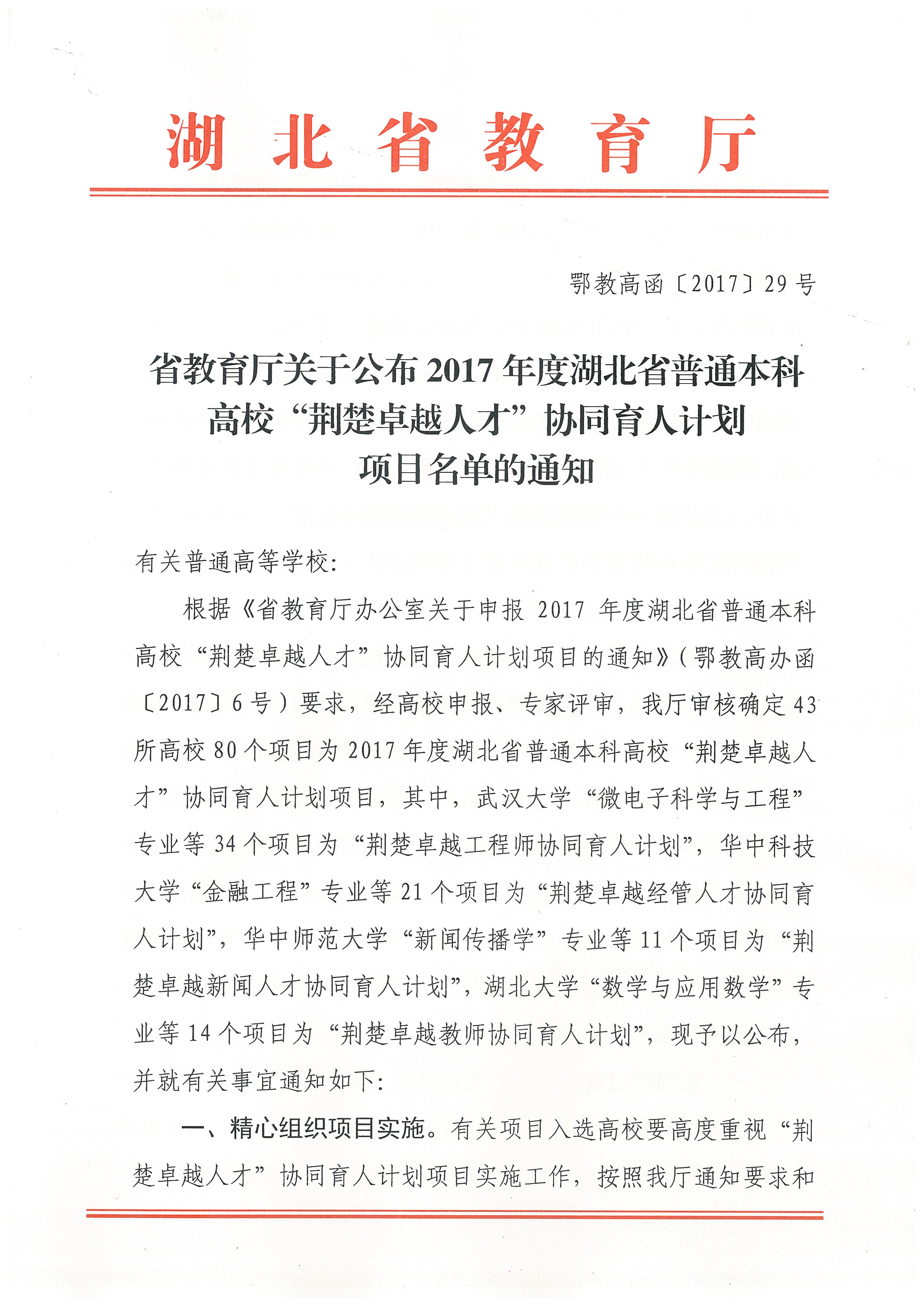 湖北省普通本科高校“荆楚卓越人才”协同育人计划项目——软件工程