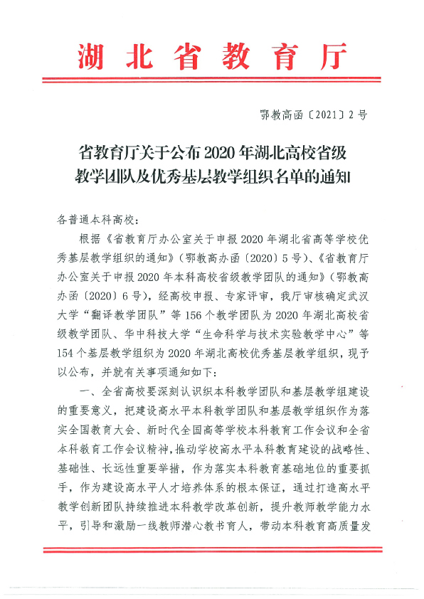 湖北高校省级教学团队及优秀基层教学组织——计科团队及软件教研室
