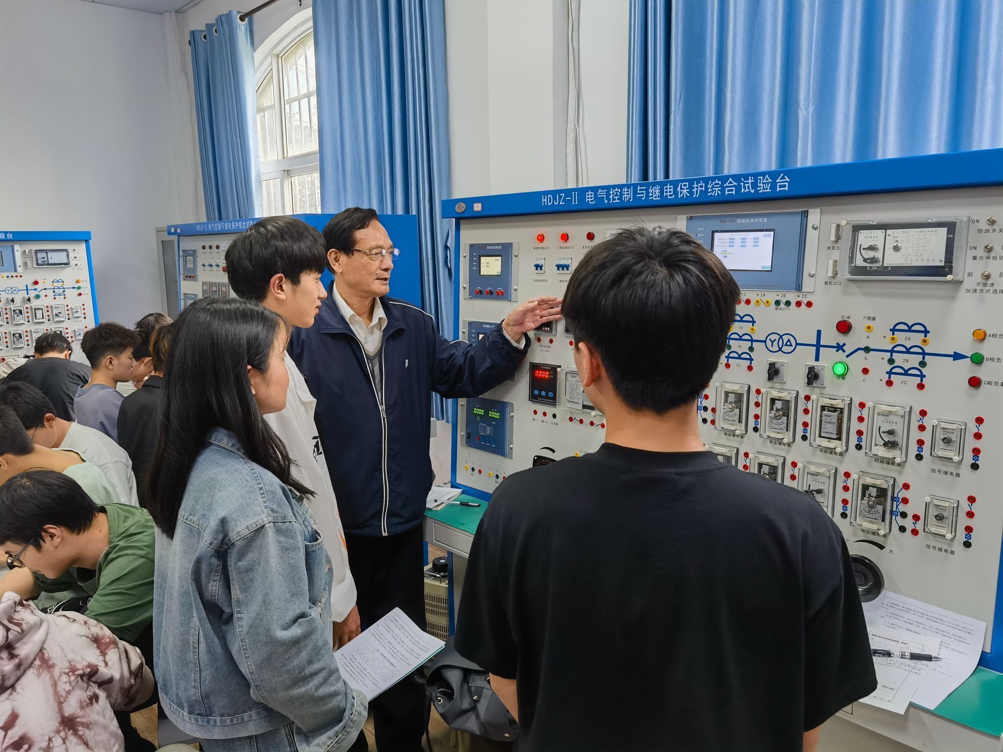 继电保护实验室,配置武汉华大电力自动技术有限公司HDJZ-2型电气控制与继电保护综合试验台6套等设备。主要面向电气工程及其自动化等专业,配合《电力系统与继电保护》课程,开设继电器特性实验、线路保护实验(一次回路实验)、线路保护实验(二次回路实验)、微机阻抗保护实验、微机线路保护实验、互感器实验、微机/常规变压器保护实验等专业课程实验。同时,作为科研的实验平台,除了向专业教师开放外,也可以进行更深层次的开发,承接诸如电力系统继电保护的横向课题。