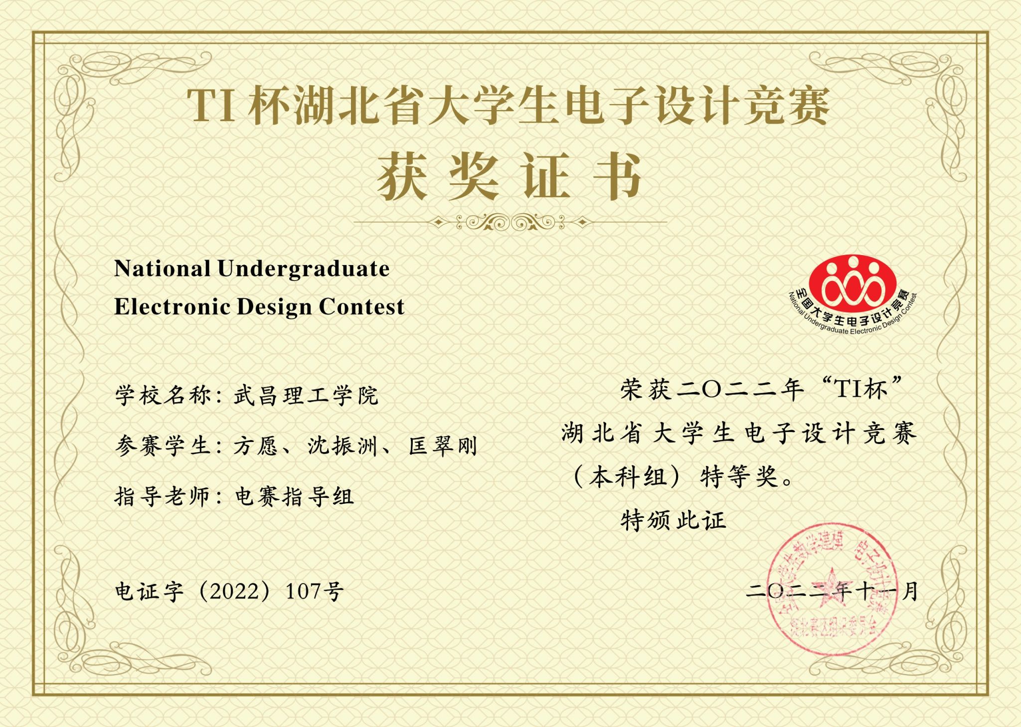 电子设计创新实训室配置主要的仪器设备有:数字信号发生器、数字示波器、直流稳压电源等。 实验室现有专职教师4名,其中副教授2名,高级实验师1名,讲师1名。 本实训室的主要任务是开辟第二课堂,培养学生的科研能力和创新精神,并通过技术攻关,培养学生团结协作、不怕困难、勇于拼搏精神。电子设计创新实验室培训的主要内容是与电子类相关专业的理论设计和实际制作。培训从基本的单元电路一直到高指标的智能系统,完成从设计、制作到调试的全部过程。培训时间1—2年,选拔其中较优秀的学生代表学校参加全国(单数年)或全省(双数年)大学生电子设计竞赛。 学生获奖情况: 2009年我校参赛7个队,获省二等奖5个。 2010年我校参赛6个队,获省一等奖2个、二等奖2个、三等奖1个。 2011年我校参赛12个队,获省一等奖1个、二等奖5个、三等奖1个。 2012年我校参赛10个队,获省三等奖6个。 2013年我校参赛12个队,获省一等奖2个、二等奖1个、三等奖6个。 2014年我校参赛12个队,获省一等奖2个、二等奖2个、三等奖5个。 2015年我校参赛12个队,获得国家一等奖1个,省级一等奖1个,省级二等奖4个,省级三等奖6个,获奖率100%。 2016年我校参赛12个队,获得湖北省特等奖1项,湖北省一等奖2项,湖北省二等奖4项,湖北省三等奖2项。 2017年获全国大学生电子设计竞赛省二等奖3项,省三等奖3项。 2018年获全国大学生电子设计竞赛省二等奖2项,省三等奖5项。 2019年获全国大学生电子设计竞赛省一等奖1项,省二等奖1项,省三等奖6项。 2020年获全国大学生电子设计竞赛省一等奖2项,省二等奖6项,省三等奖1项。 2021年获全国大学生电子设计竞赛国家二等奖1项,省一等奖4项,省二等奖4项,省三等奖1项。 2022年获全国大学生电子设计竞赛获省特等奖4项,省一等奖4项,省二等奖1项,省三等奖2项。 2023年获全国大学生电子设计竞赛国家一等奖1项,国二等奖1项,省一等奖3项,省二等奖3项,省三等奖1项。 2024年获全国大学生电子设计竞赛省二等奖4项,省三等奖5项。 |