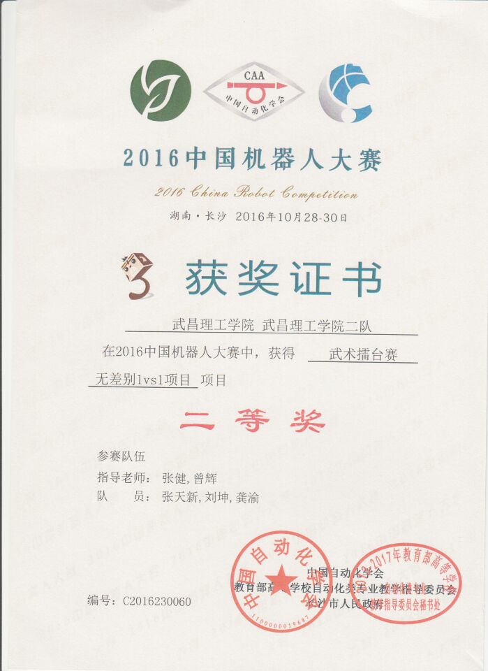 学生参加中国机器人大赛获奖情况: