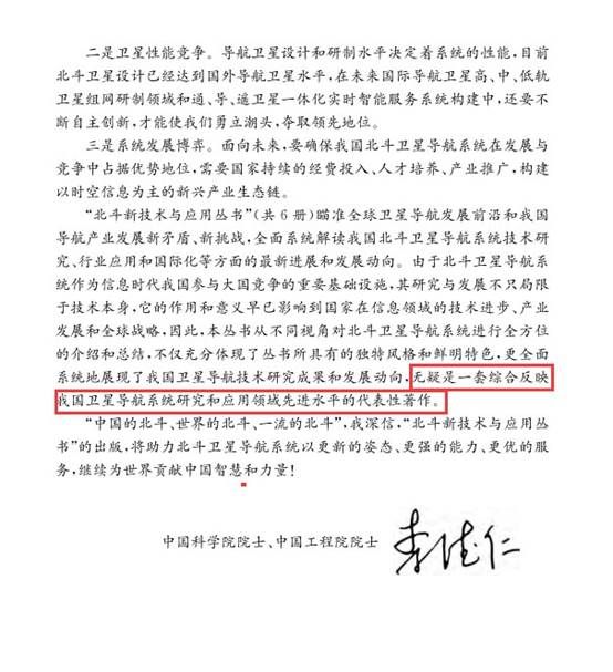 李德仁院士评价专著《北斗卫星导航系统行业应用》: