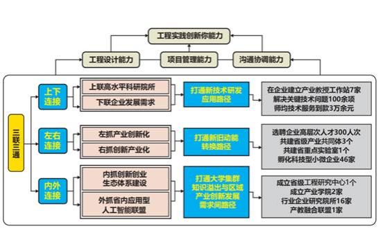 通过上下联动,与高水平研究机构携手共建研发中心,同时与企业需求对接,共同打造创新平台,从而打通从新技术研发到应用的完整路径。解决教师工程实践知识更新缓慢、学生工程设计能力不足以及理论与实践脱节的问题。